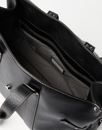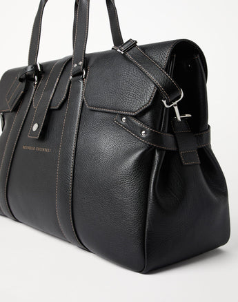 An elegant accessory designed for out-of-town trips, this Weekender Country bag combines luxurious materials and refined details to create sophisticated texture and colour contrasts. The calfskin’s distinct irregular grain defines its vintage-inspired feel, while the double handle and shoulder strap make it versatile and practical. The interior is equipped with a fabric lining that protects the contents from contact with water