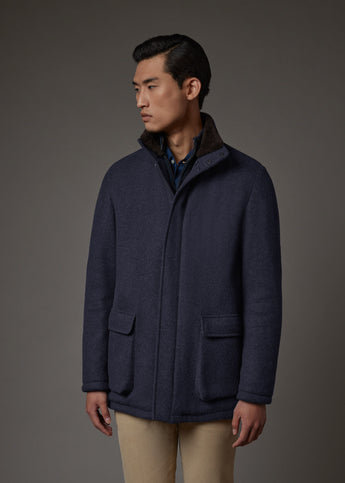 Iconic over-jacket designed for travel and city life, crafted from double cashmere jersey. Warm, comfortable outerwear, lined in super-soft castorino fur.