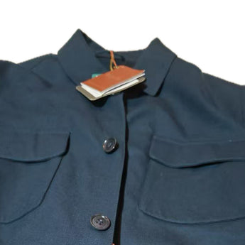 Shirt-jacket crafted from Gokmate, a very refined material with an outer layer in fabric and a knitted inner layer in The Gift of Kings®, Loro Piana's exclusive selection of the finest wool in the world, measuring only 12 microns in diameter. Treated with Rain System® for water-repellent protection, it features patch pockets with a flap and concealed press stud on the chest.
