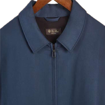 Bomber with shirt-style collar crafted from double fabric in The Gift of Kings® wool, Loro Piana's exclusive selection of the finest wool in the world: only 12 microns in diameter. Treated with Rain System® for water-repellent protection and styled with a fitted cut.